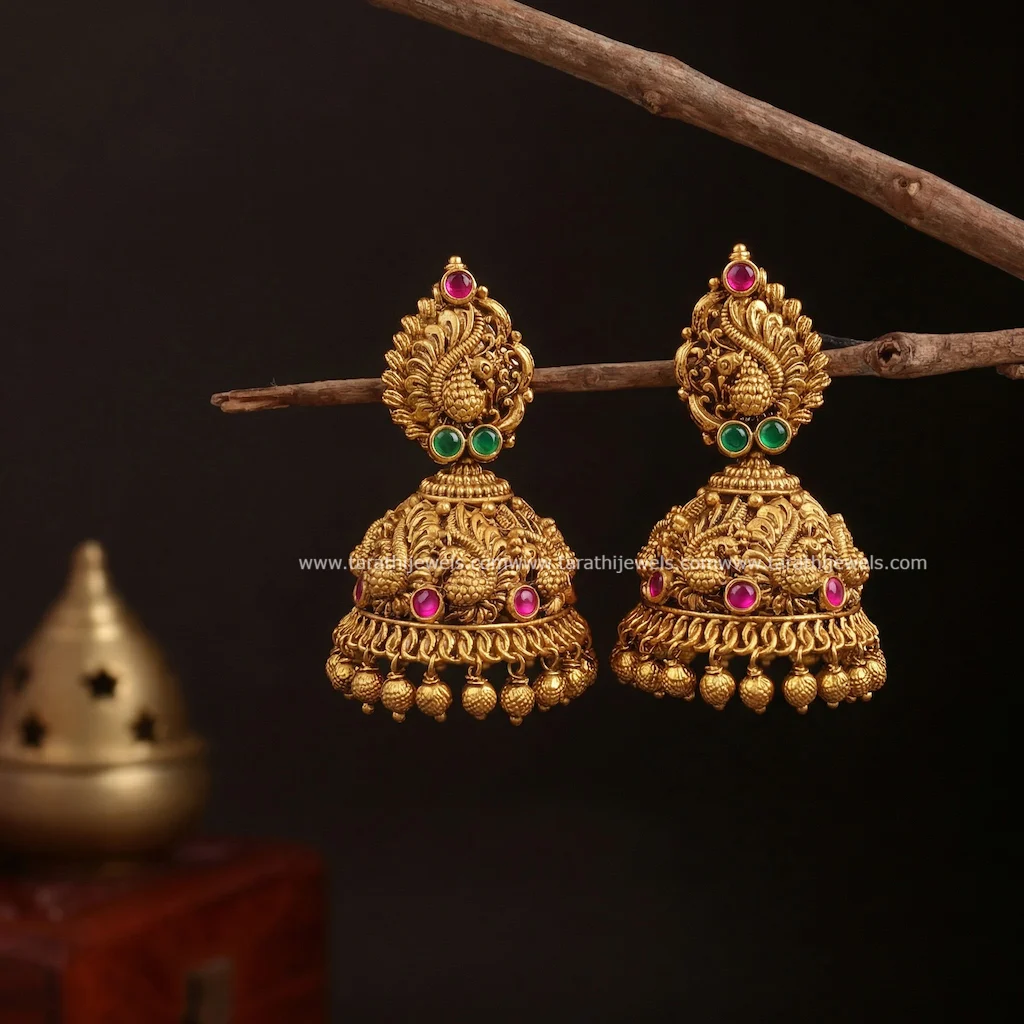 This beautiful Jumka made of copper and brass with kemp stones and has a gold look alike finish to it.