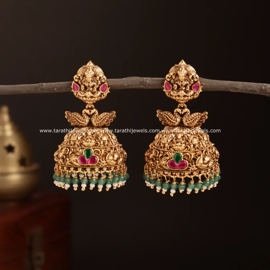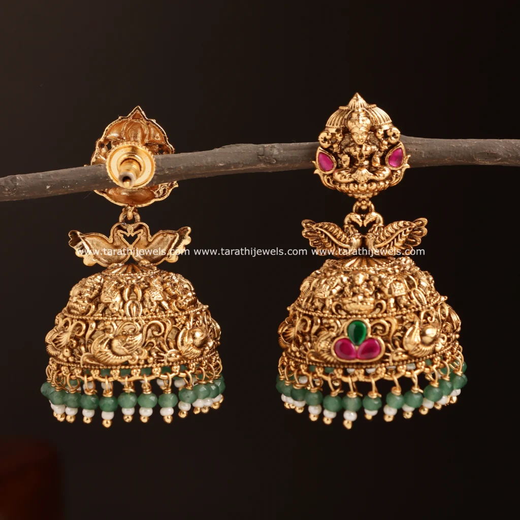 This beautiful Jumka made of copper and brass with kemp stones and has a gold look alike finish to it.