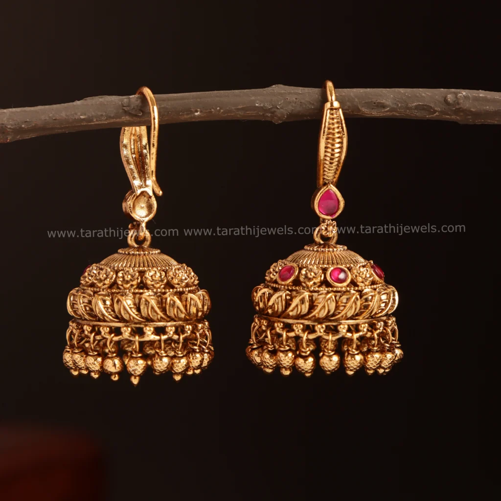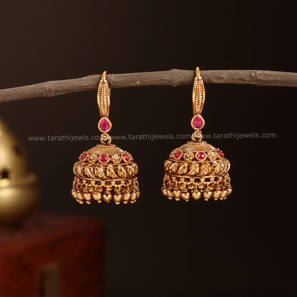This beautiful Jumka made of copper and brass with kemp stones and has a gold look alike finish to it.