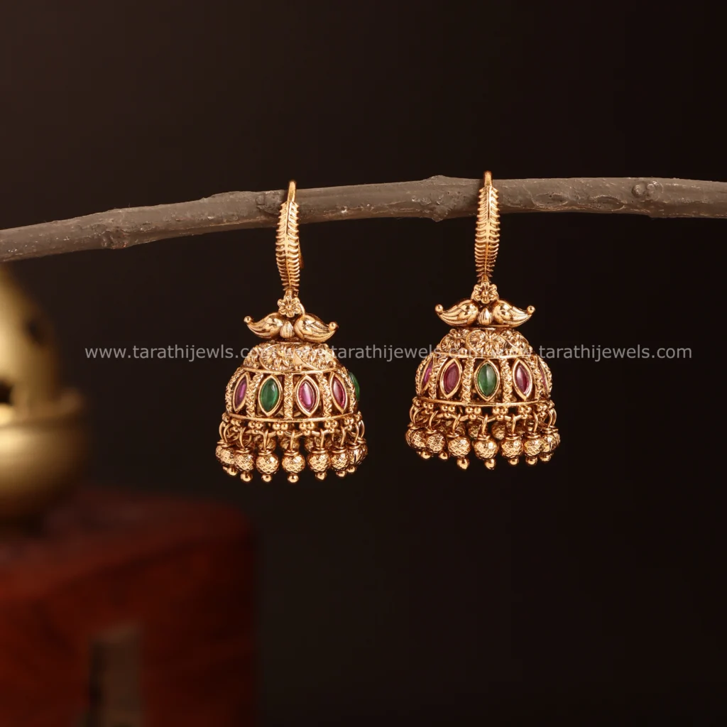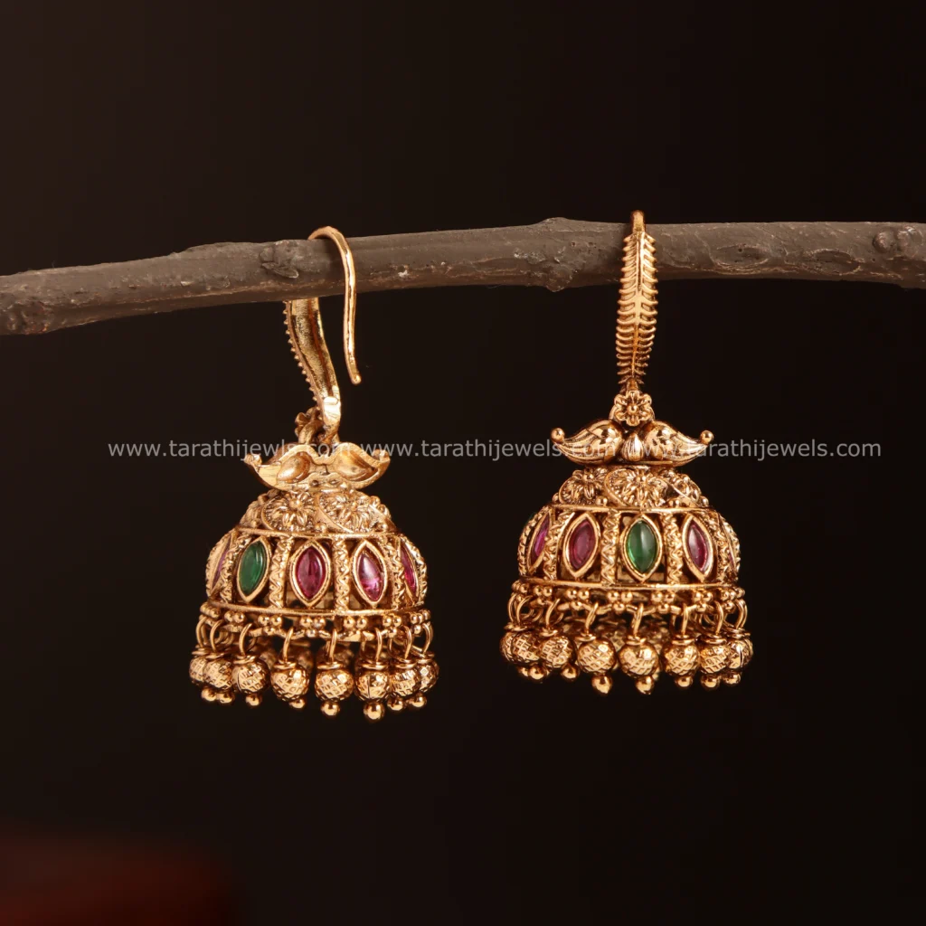 This beautiful Jumka made of copper and brass with kemp stones and has a gold look alike finish to it.