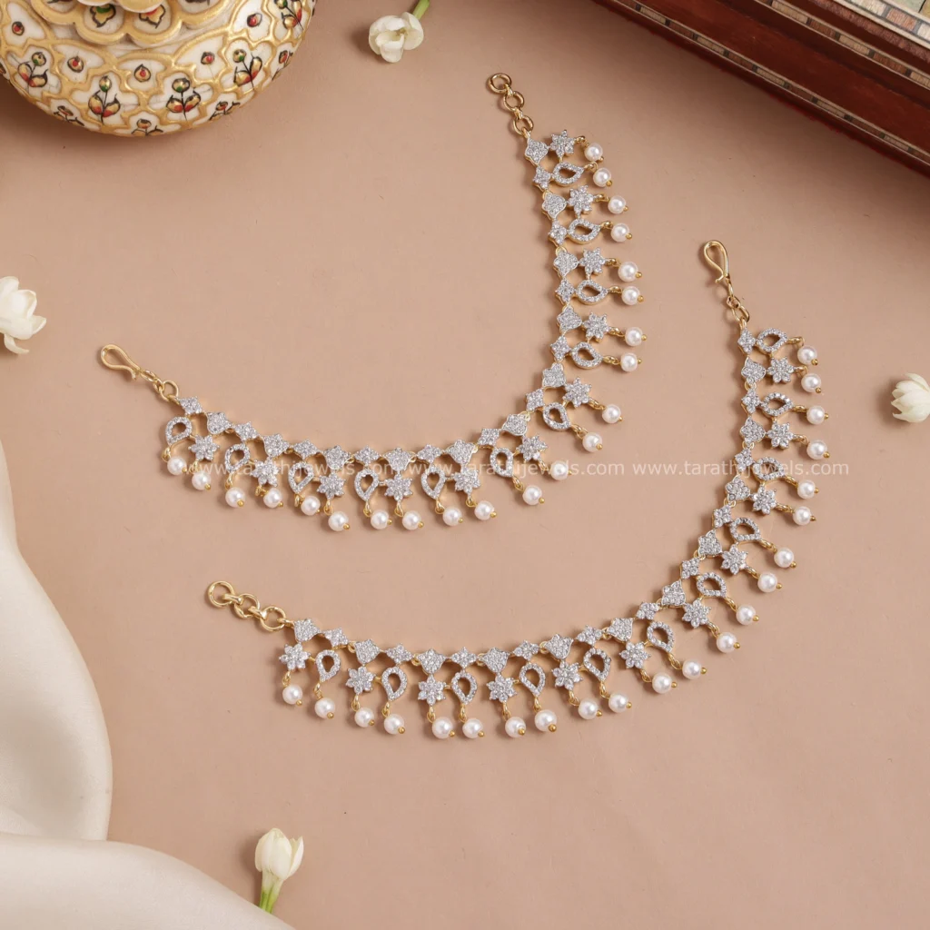 This Earring Mattal made of copper and brass with Ad stones and has a gold look alike finish to it.
