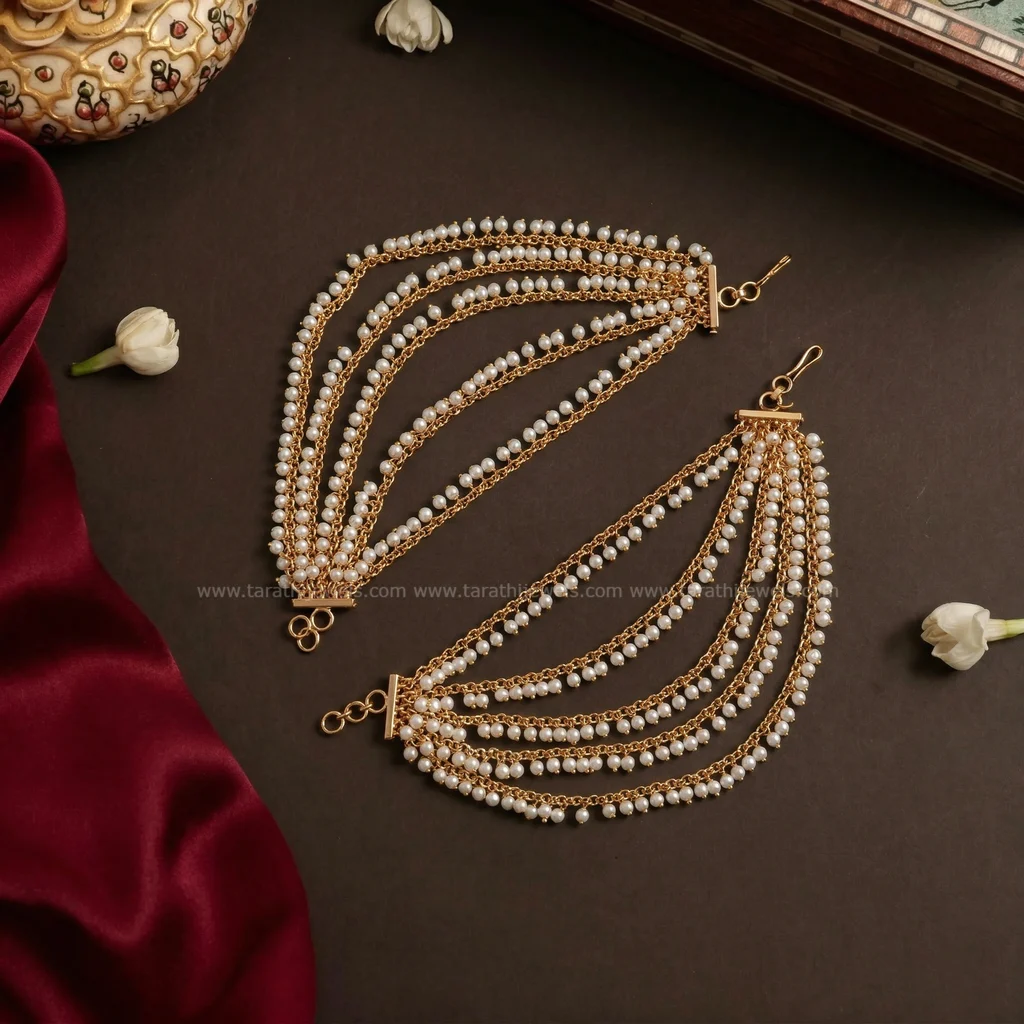 This Earring Mattal made of copper and brass with Pearl drops and has a gold look alike finish to it.