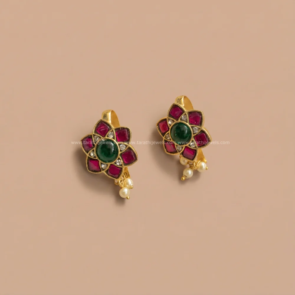 This Beautiful Jadau Bugadi Made Maharashtrian Style Press And Kemp Stone and has a gold look alike finish to it.
