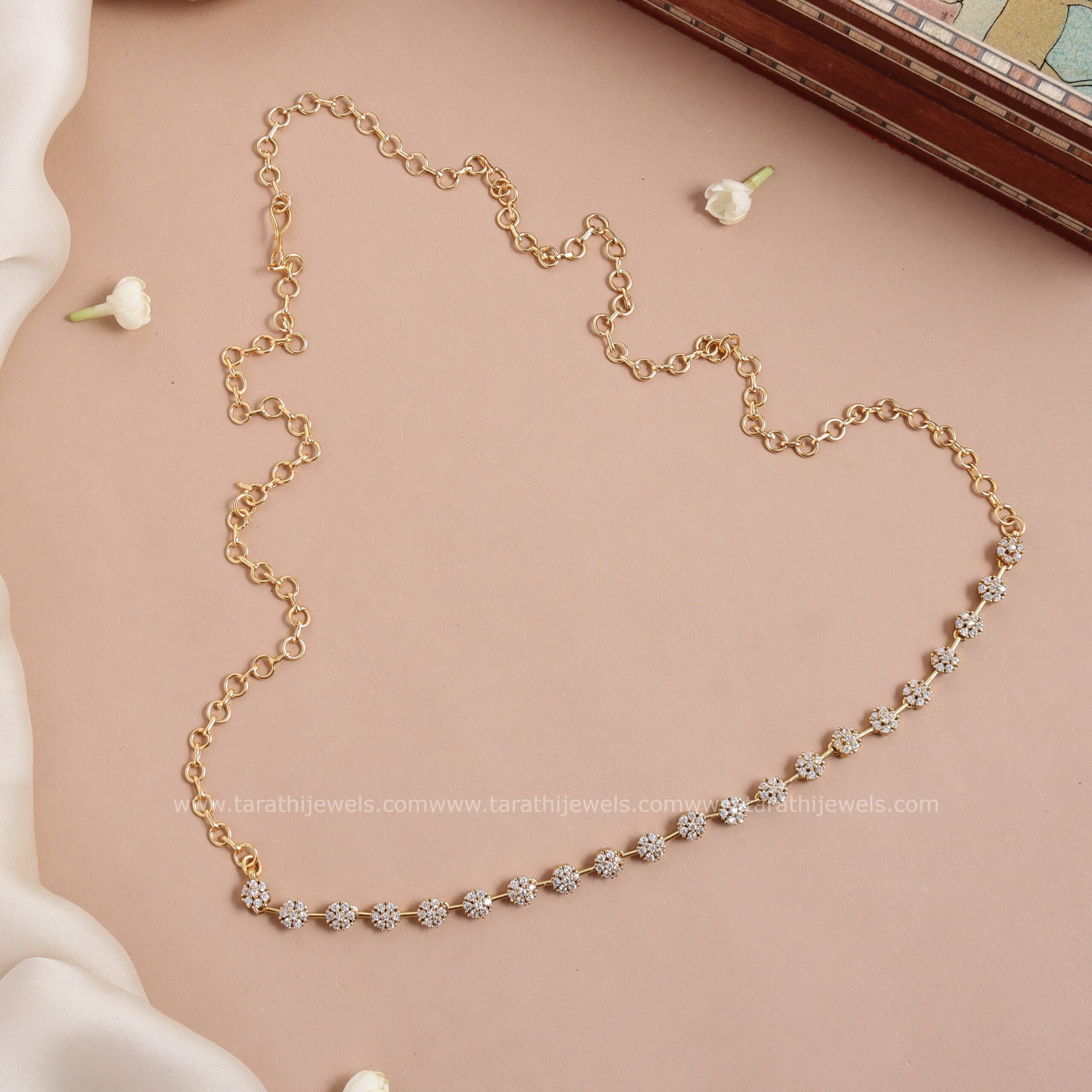 Make material: This beautiful hip chain is made of copper and brass and has a gold look alike finish to it.
