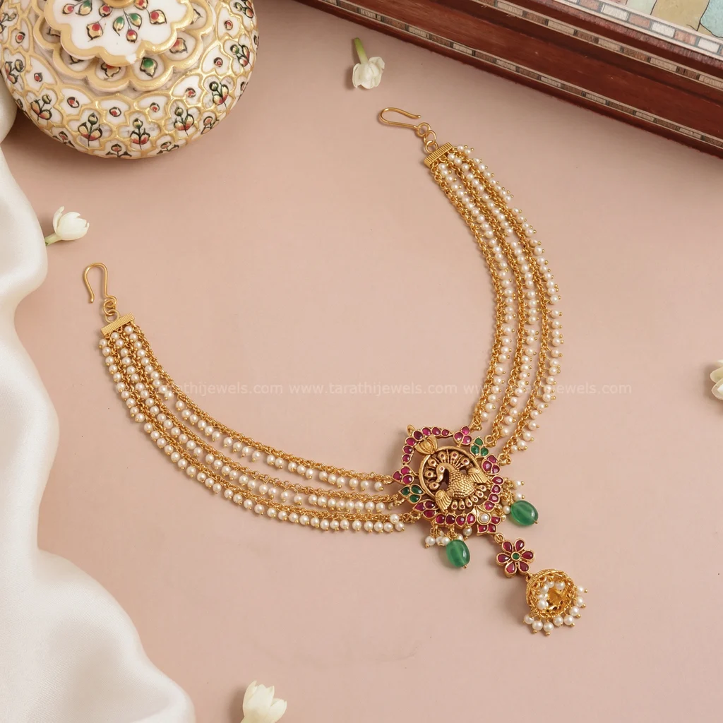 This beautiful Jada Billa With Maatal made of copper and brass with Kemp stones and has a gold look alike finish to it.
