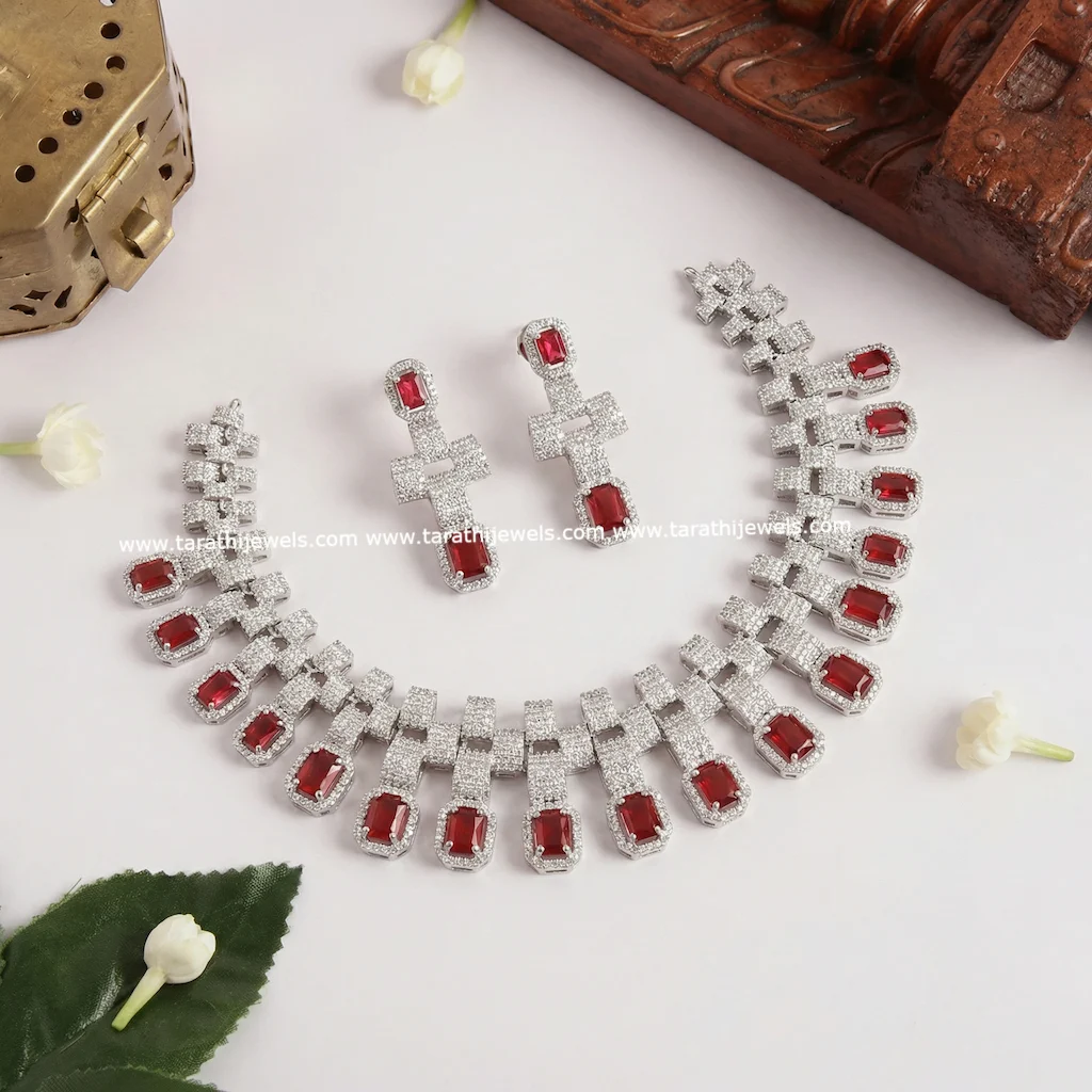 White Tone American Diamond Necklace