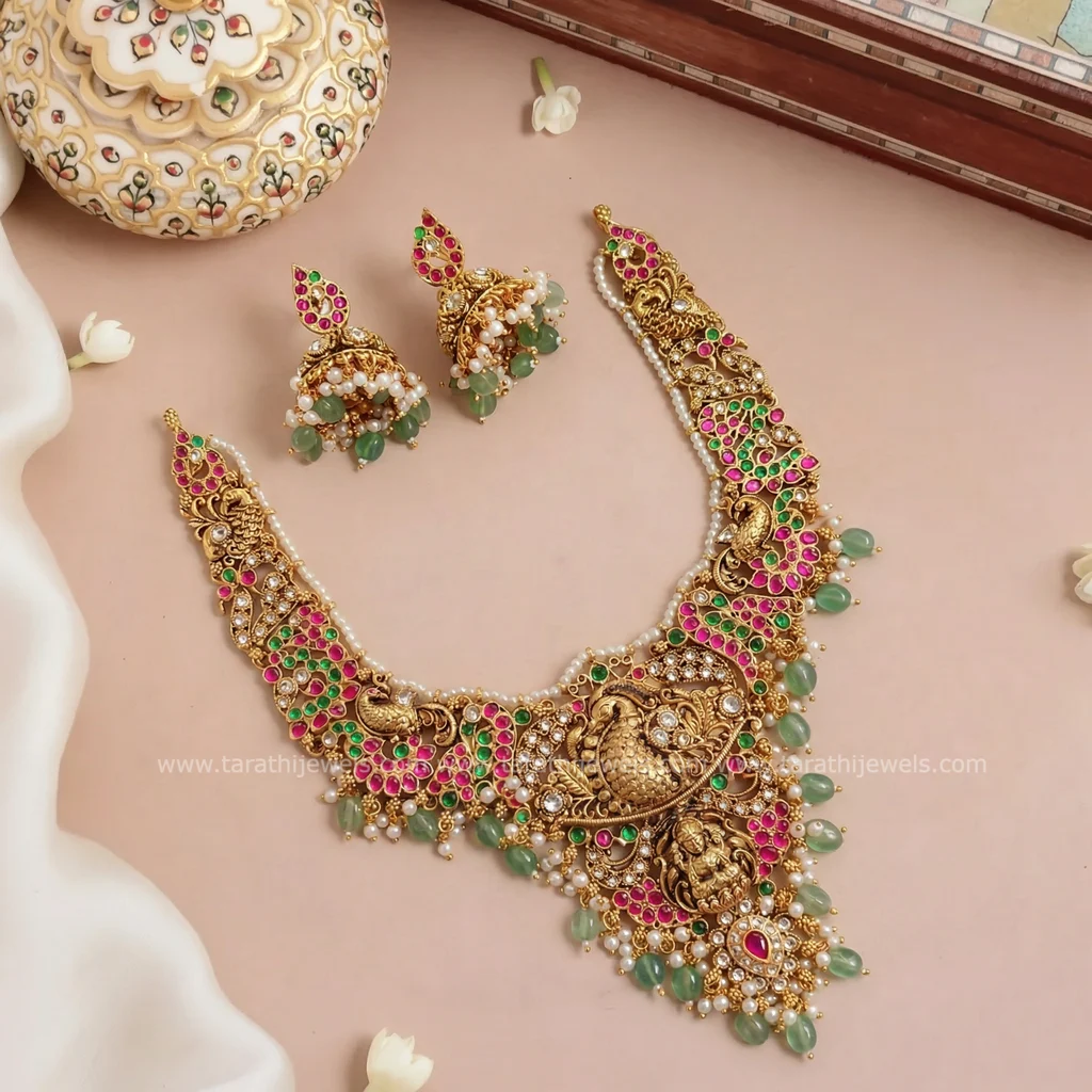 Make material: This Jadau Necklace is made of kundan stones and pearls and copper and brass alloy.