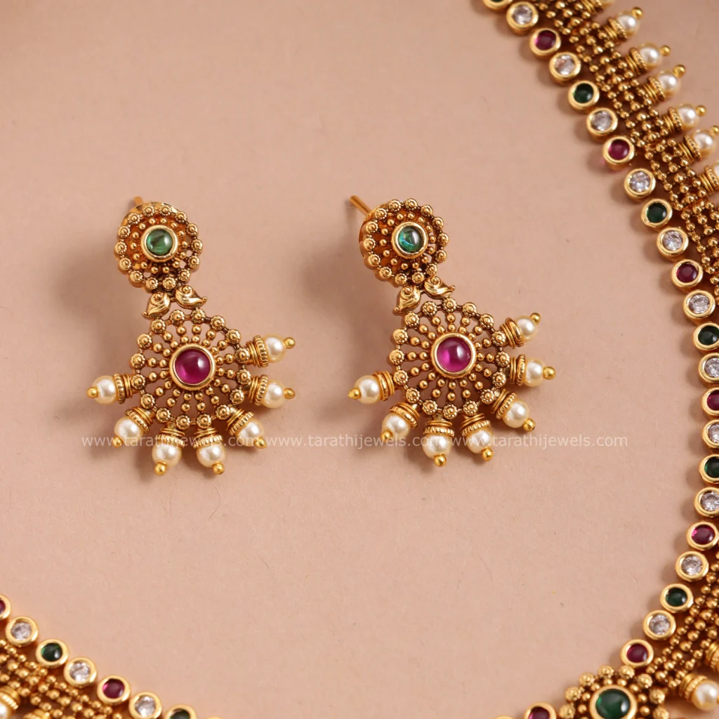 Make material –This Necklace is made of copper and brass and Ad Stones has a gold look alike finish to it.