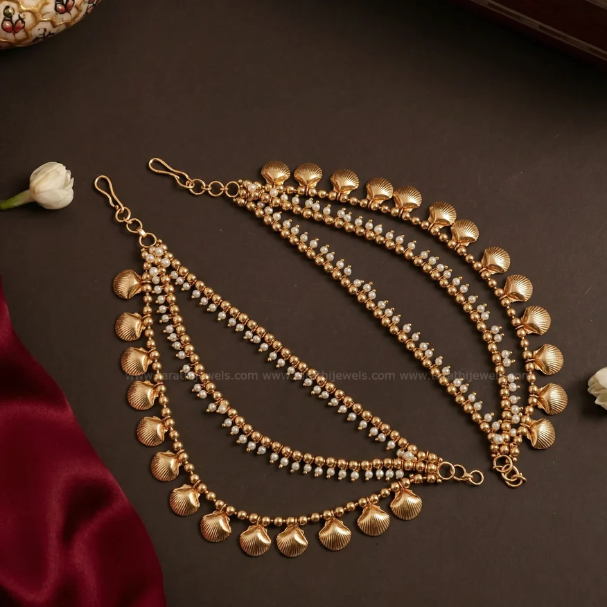 Three Layer Gold Shell Earring Chain Three Layer With Pearls Maatal