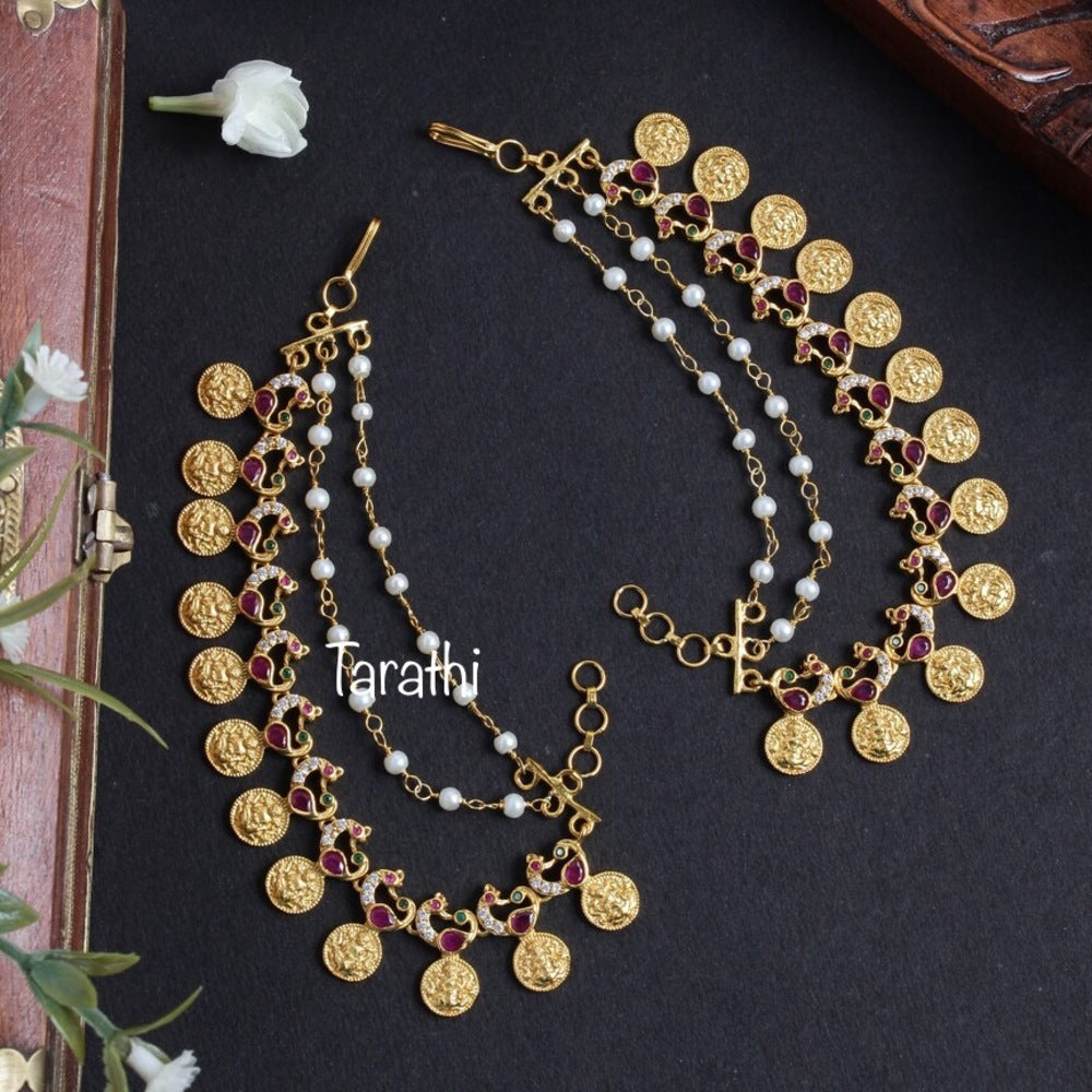 This Earring Mattal made of copper and brass with Ad stones and has a gold look alike finish to it.